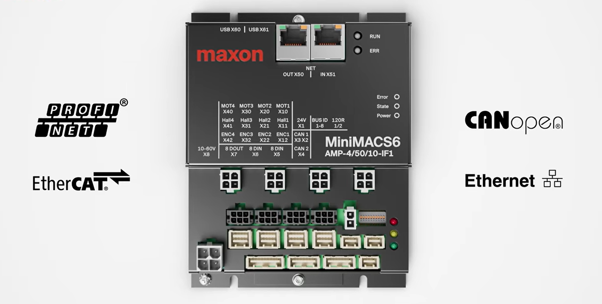 maxon MiniMACS6 AMP 4-IF1 Profinet: controlador multieje con conectividad industrial avanzada